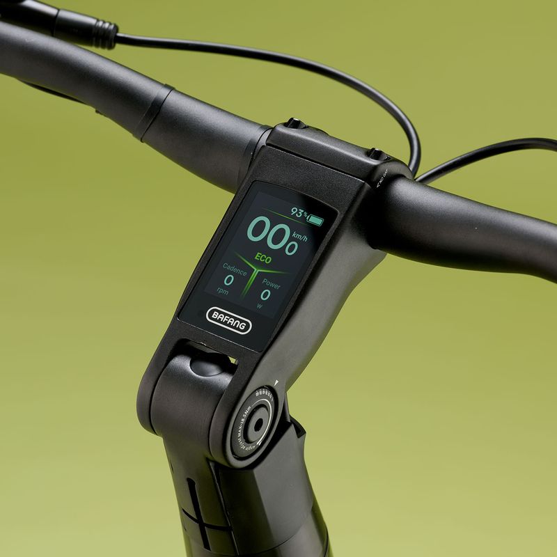 Cyklen er udstyret med Bafang C400 centerdisplay med 6 funktioner, som er elegant integreret i frempinden og giver fuldt overblik over hastighed, batteri og assistanceniveau.