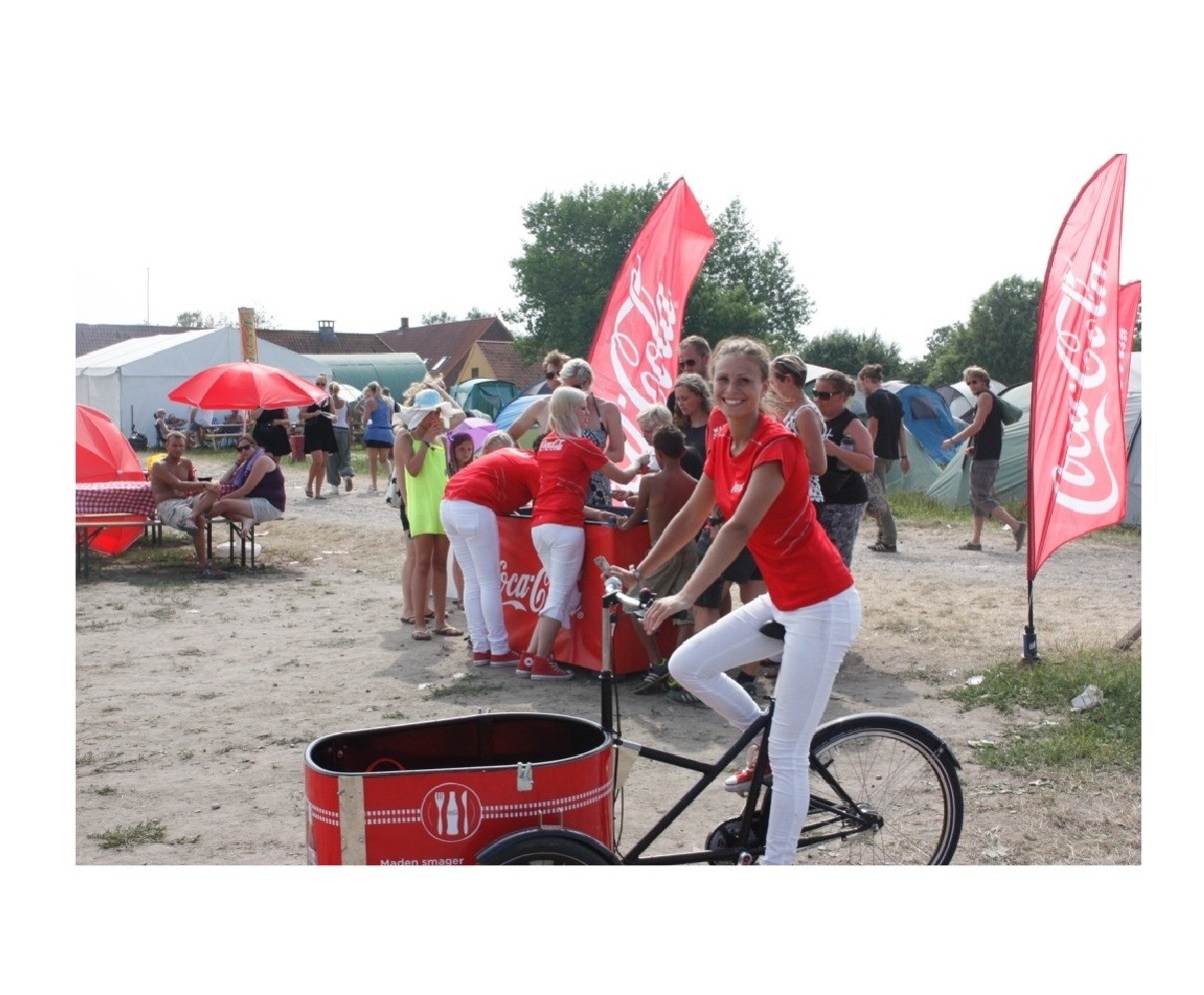 Reklamér f.eks. med firma-logo på den 1200 mm. høje aluminiums plakatsøjle, midt i byens centrum, og løs samtidig en transportopgave. Posterbiken kan leveres med ballon eller fadøls anlæg og det dobbelte varerum kan aflåses.